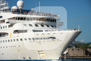 Description: Tourists cruise ship sailing into the harbour at Curacao Netherlands Antilles