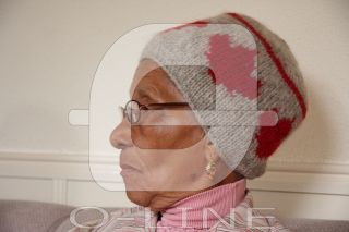 Description: Profile, Elderly woman with head coverd horizontal orientation