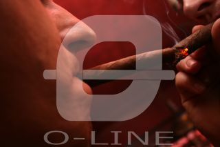 Description: a light is given from a cigar to another cigar by 2 people een vuurtje doorgegeven van de ene naar de andere sigaar door 2 personen