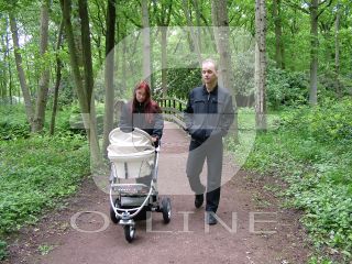 Description: Young family taking a walk in the park